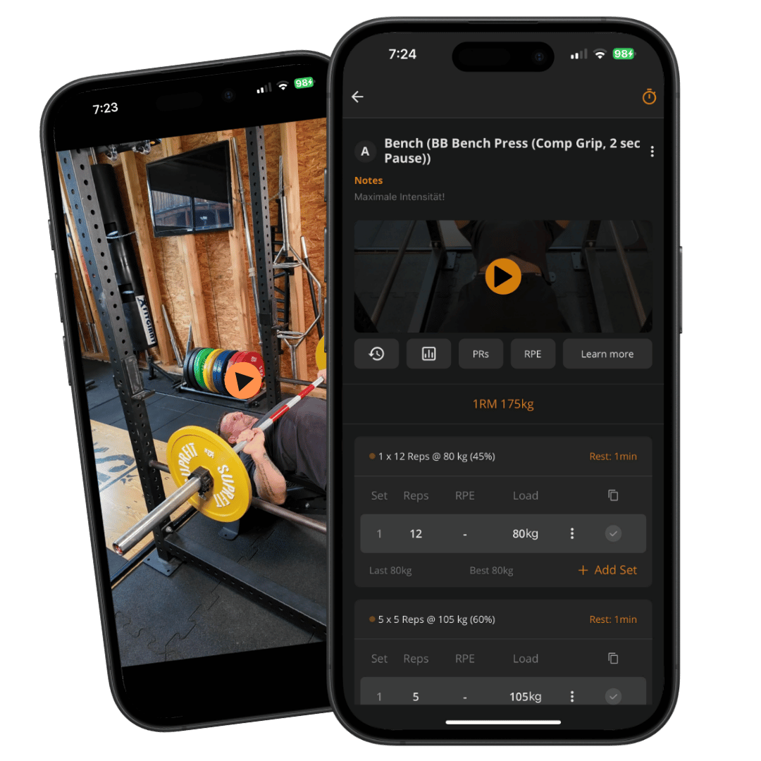 Für einen Bruchteil der Kosten eines 1 on 1 Coachings bekommst du alles, was du brauchst – professionell erstellte Programme, Echtzeit-Tracking und effektive Tools, die dich wirklich weiterbringen. Hör auf, Zeit zu verschwenden, und werde stärker, schneller und leistungsfähiger.