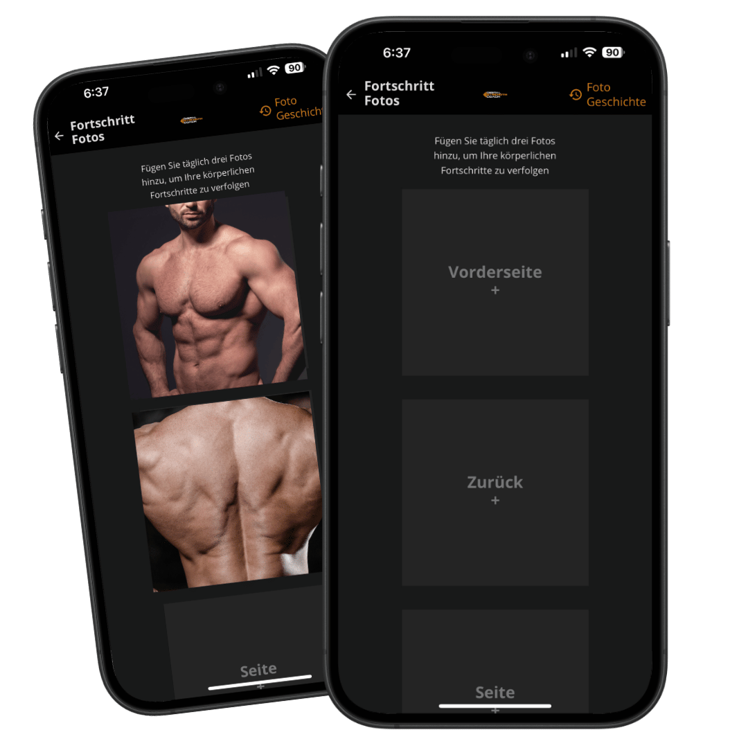 Dokumentiere deine Transformation mit integrierten Tools für Fortschrittsfotos. Sieh, wie weit du gekommen bist.
